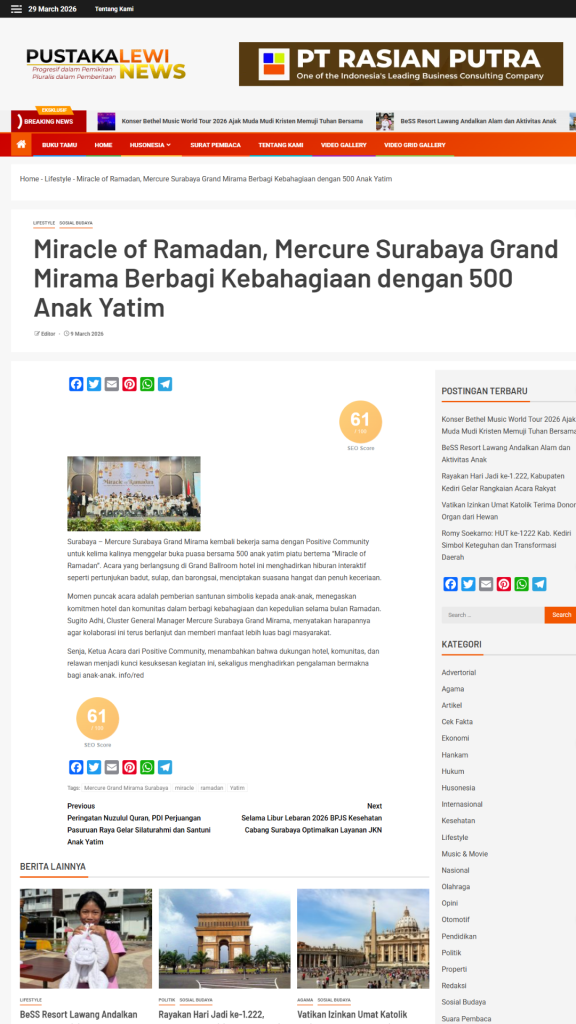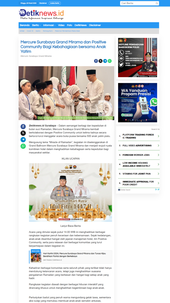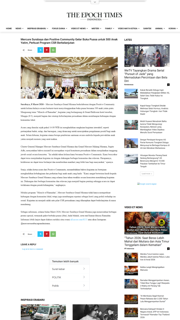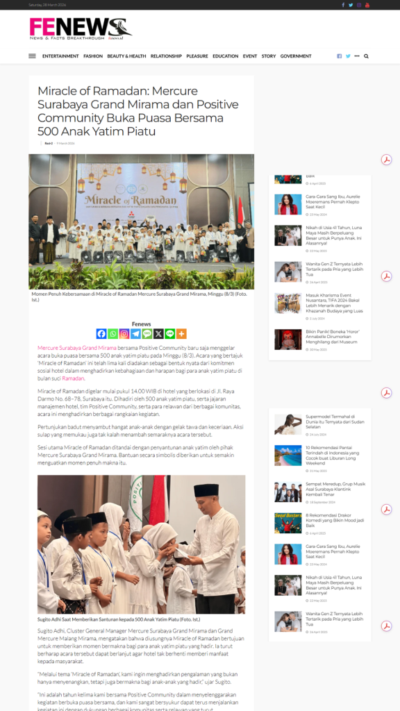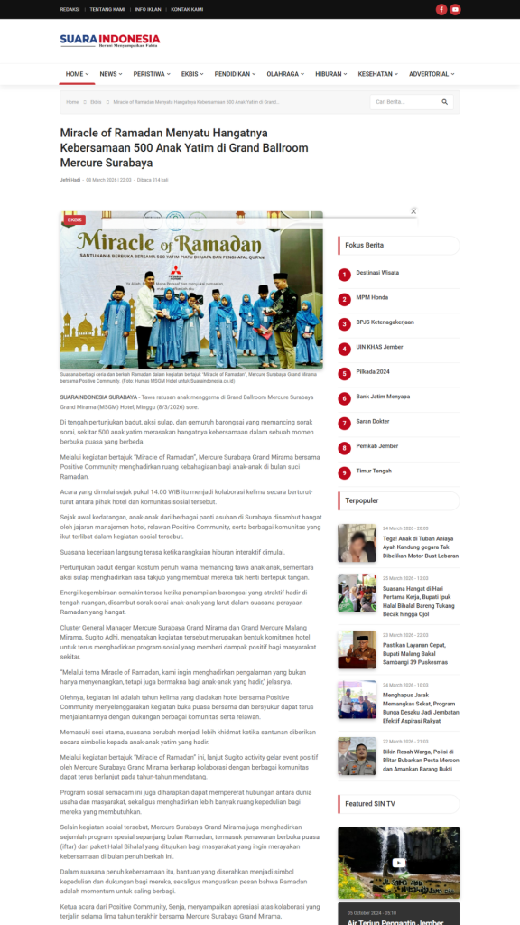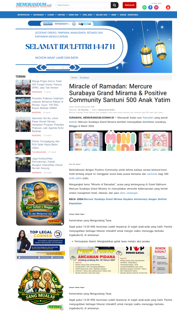 Terimkasih untuk segenap Relawan, Orang Baik, CSR Coorpotare, Lembaga Kemanusiaan dan Komunitas-komunitas yang tergabung turut membersamai membahagiakan adik-adik, serta beberapa Media yang turut mensupport baik sebelum acara maupun setelah acara dengan menampilkan Press Release Miracle of Ramadhan 2026.